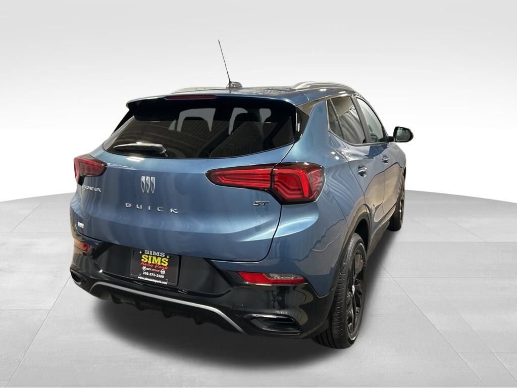 Certified. Ocean Blue Metallic 2024 Buick Encore GX Sport Touring AWD 9-Speed Automatic ECOTEC 1.3L Turbo 2-Way Power Driver Lumbar Control, 8-Way Power Driver Seat Adjuster, Comfort Package, Heated Driver & Front Passenger Seats, Heated Steering Wheel, Remote Vehicle Starter System, Wireless Apple CarPlay/Wireless Android Auto.This 2024 Buick Encore GX Sport Touring brings together sporty styling, premium comfort, and everyday versatility. With its bold new front-end design, gloss-black grille, and 18-inch wheels, it stands out wherever it goes. Powered by a 1.3L turbocharged engine, it delivers lively performance and excellent fuel efficiency, with available all-wheel drive for added confidence. Inside, youll find Buicks new Virtual Cockpit System featuring an 11-inch infotainment touchscreen and 8-inch driver display, plus wireless Apple CarPlay, Android Auto, and available wireless charging. Designed for both comfort and practicality, it offers flexible cargo space and Buicks signature quiet, refined ride. The Sport Touring also includes advanced safety technologies like lane keep assist, forward collision alert, and automatic emergency braking, making it a smart and stylish choice for drivers who want upscale features in a compact SUV.Keep it Simple with Sims Simple Steps to your next vehicle! Pick your car, configure your deal, and schedule delivery! We make it simple. Need more pictures? Just ask! Would a walk around video help? No problem! Thank you for letting Sims keep it Simple for you! Odometer is 9375 miles below market average! 26/28 City/Highway MPGBuick Certified Pre-Owned Details:* Transferable Warranty* Powertrain Limited Warranty: 72 Month/100,000 Mile (whichever comes first) from original in-service date* Limited Warranty: 12 Month/12,000 Mile (whichever comes first) from certified purchase date* Vehicle History* 172 Point Inspection* Warranty Deductible: $0* 24 months/24,000 miles (whichever comes first) Certified Pre-Owned Scheduled Maintenance Plan and 3 days/150 miles (whichever comes first) Vehicle Exchange Program. 1 month of OnStar Safety & Security Plan, Navigation Services, Remote Access Plan, and 1 month or 3GB of 4G LTE data (whichever comes first).* Roadside Assistance