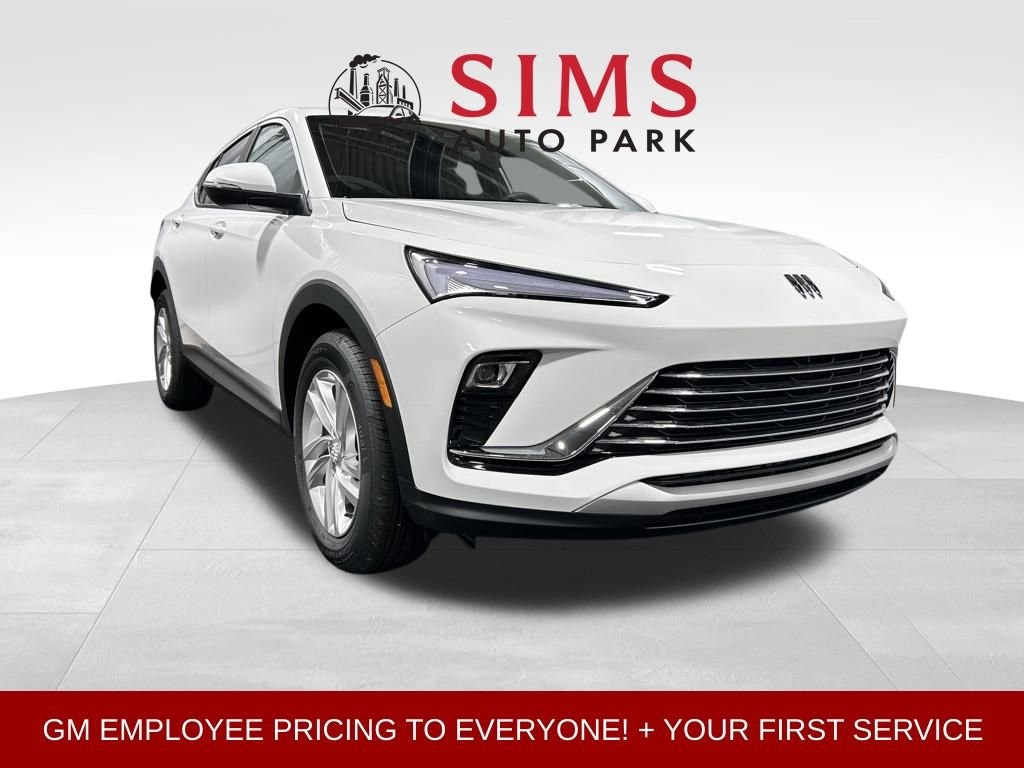 Summit White 2025 Buick Envista Preferred FWD 6-Speed Automatic ECOTEC 1.2L Turbo 2 USB Ports (1 Type-A, 1 Type-C), 3.50 Final Drive Axle Ratio, 4-Way Manual Front Passenger Seat Adjuster, 4-Wheel Disc Brakes, 6 Speakers, 6-Way Manual Driver Seat Adjuster, ABS brakes, Adaptive Cruise Control, Advanced Safety Package, Air Conditioning, All-Weather Floor Liners (LPO), Alloy wheels, AM/FM radio: SiriusXM, Auto High-beam Headlights, Automatic temperature control, Brake assist, Bumpers: body-color, Cloth w/Leatherette Seat Trim, Compass, Delay-off headlights, Driver door bin, Driver vanity mirror, Dual front impact airbags, Dual front side impact airbags, Electronic Stability Control, Emergency communication system: OnStar, Exterior Parking Camera Rear, Front anti-roll bar, Front Bucket Seats, Front Center Armrest, Front License Plate Bracket, Front reading lights, Front wheel independent suspension, Fully automatic headlights, Heated door mirrors, Illuminated entry, Lane Change Alert w/Side Blind Zone Alert, Low tire pressure warning, Occupant sensing airbag, Outside temperature display, Overhead airbag, Overhead console, Panic alarm, Passenger door bin, Passenger vanity mirror, Power door mirrors, Power steering, Power windows, Preferred Equipment Group G02, Premium 6-Speaker Audio System Feature, Radio data system, Radio: AM/FM Stereo Audio System, Rear Cross Traffic Alert, Rear Parking Sensors, Rear window defroster, Remote keyless entry, Security system, SiriusXM Trial Subscription, Speed control, Split folding rear seat, Steering wheel mounted audio controls, Tachometer, Telescoping steering wheel, Tilt steering wheel, Traction control, Trip computer, Turn signal indicator mirrors, Variably intermittent wipers, Wheels: 17 Bright Silver Painted Aluminum, Wireless Apple CarPlay/Wireless Android Auto.