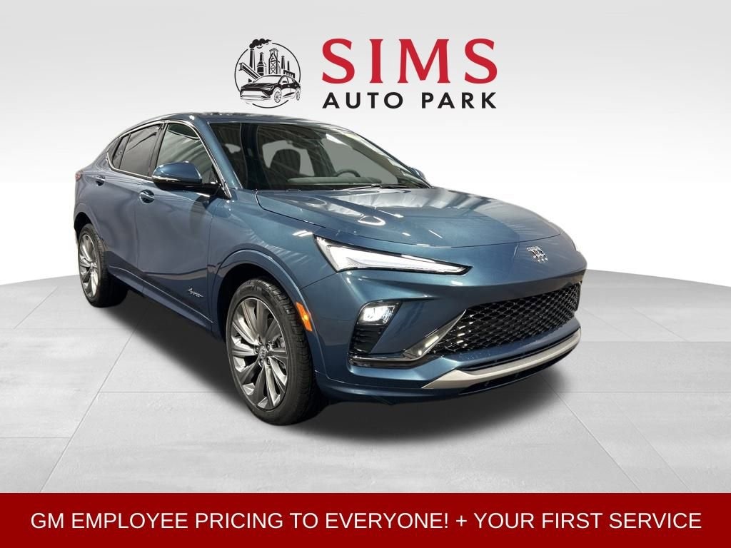 Ocean Blue Metallic 2025 Buick Envista Avenir FWD 6-Speed Automatic ECOTEC 1.2L Turbo 2 USB Ports (1 Type-A, 1 Type-C), 2-Way Power Driver Lumbar Control, 3.50 Final Drive Axle Ratio, 4-Way Manual Front Passenger Seat Adjuster, 4-Wheel Disc Brakes, 6 Speakers, 8-Way Power Driver Seat Adjuster, ABS brakes, Air Conditioning, All-Weather Floor Liners (LPO), Alloy wheels, AM/FM radio: SiriusXM, Auto High-beam Headlights, Auto-dimming Rear-View mirror, Automatic temperature control, Brake assist, Bumpers: body-color, Compass, Delay-off headlights, Driver door bin, Driver vanity mirror, Dual front impact airbags, Dual front side impact airbags, Electronic Stability Control, Emergency communication system: OnStar, Exterior Parking Camera Rear, Front anti-roll bar, Front Bucket Seats, Front Center Armrest, Front reading lights, Front wheel independent suspension, Fully automatic headlights, Heated door mirrors, Heated Driver & Front Passenger Seats, Heated front seats, Heated steering wheel, Illuminated entry, Low tire pressure warning, Occupant sensing airbag, Outside temperature display, Overhead airbag, Overhead console, Panic alarm, Passenger door bin, Passenger vanity mirror, Perforated Leather-Appointed Seat Trim, Power door mirrors, Power driver seat, Power Liftgate, Power steering, Power Tilt-Sliding Moonroof w/Manual Sunshade, Power windows, Preferred Equipment Group G04, Premium 6-Speaker Audio System Feature, Radio data system, Radio: AM/FM Stereo Audio System, Rear Parking Sensors, Rear seat center armrest, Rear window defroster, Remote keyless entry, Security system, SiriusXM Trial Subscription, Speed control, Split folding rear seat, Steering wheel mounted audio controls, Tachometer, Telescoping steering wheel, Tilt steering wheel, Traction control, Trip computer, Turn signal indicator mirrors, Variably intermittent wipers, Wheels: 19 Avenir Premium Pearl Nickel Aluminum, Wireless Apple CarPlay/Wireless Android Auto.