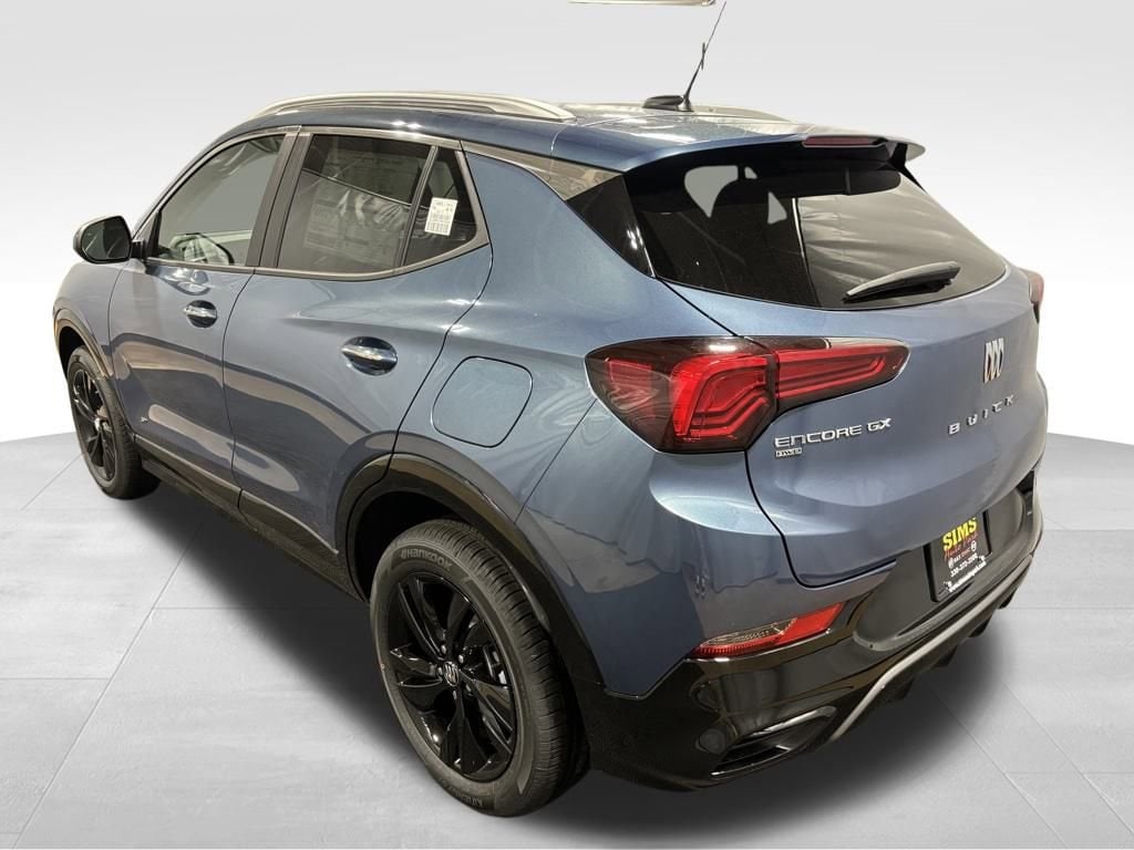 Ocean Blue Metallic 2026 Buick Encore GX Sport Touring AWD 9-Speed Automatic ECOTEC 1.3L Turbo 3.17 Final Drive Axle Ratio, 4-Way Manual Passenger Seat Adjuster, 4-Wheel Disc Brakes, 6-Way Manual Driver Seat Adjuster, 7 Speakers, ABS brakes, Air Conditioning, All-Weather Floor Liners (LPO), Alloy wheels, AM/FM radio: SiriusXM, Auto High-beam Headlights, Automatic temperature control, Brake assist, Bumpers: body-color, Compass, Delay-off headlights, Driver door bin, Driver vanity mirror, Dual front impact airbags, Dual front side impact airbags, Electronic Stability Control, Emergency communication system: OnStar and Buick connected services capable, Enhanced Performance 7-Speaker System w/Amplifier, Front anti-roll bar, Front Bucket Seats, Front Center Armrest, Front reading lights, Front wheel independent suspension, Fully automatic headlights, Heated door mirrors, Illuminated entry, Knee airbag, Leatherette Seat Trim, Low tire pressure warning, Mechanical Jack w/Tools, Occupant sensing airbag, Outside temperature display, Overhead airbag, Overhead console, Panic alarm, Passenger door bin, Passenger vanity mirror, Power door mirrors, Power Liftgate, Power steering, Power windows, Preferred Equipment Group 1SD, Radio data system, Radio: AM/FM Audio System, Rear reading lights, Rear side impact airbag, Rear window defroster, Rear window wiper, Remote keyless entry, Ride & Handling Suspension, Security system, SiriusXM Trial Subscription, Speed control, Speed-sensing steering, Split folding rear seat, Spoiler, Sport steering wheel, Steering wheel mounted audio controls, Tachometer, Telescoping steering wheel, Tilt steering wheel, Traction control, Trip computer, Variably intermittent wipers, Wheels: 18 Gloss Black Aluminum, Wireless Apple CarPlay/Wireless Android Auto.