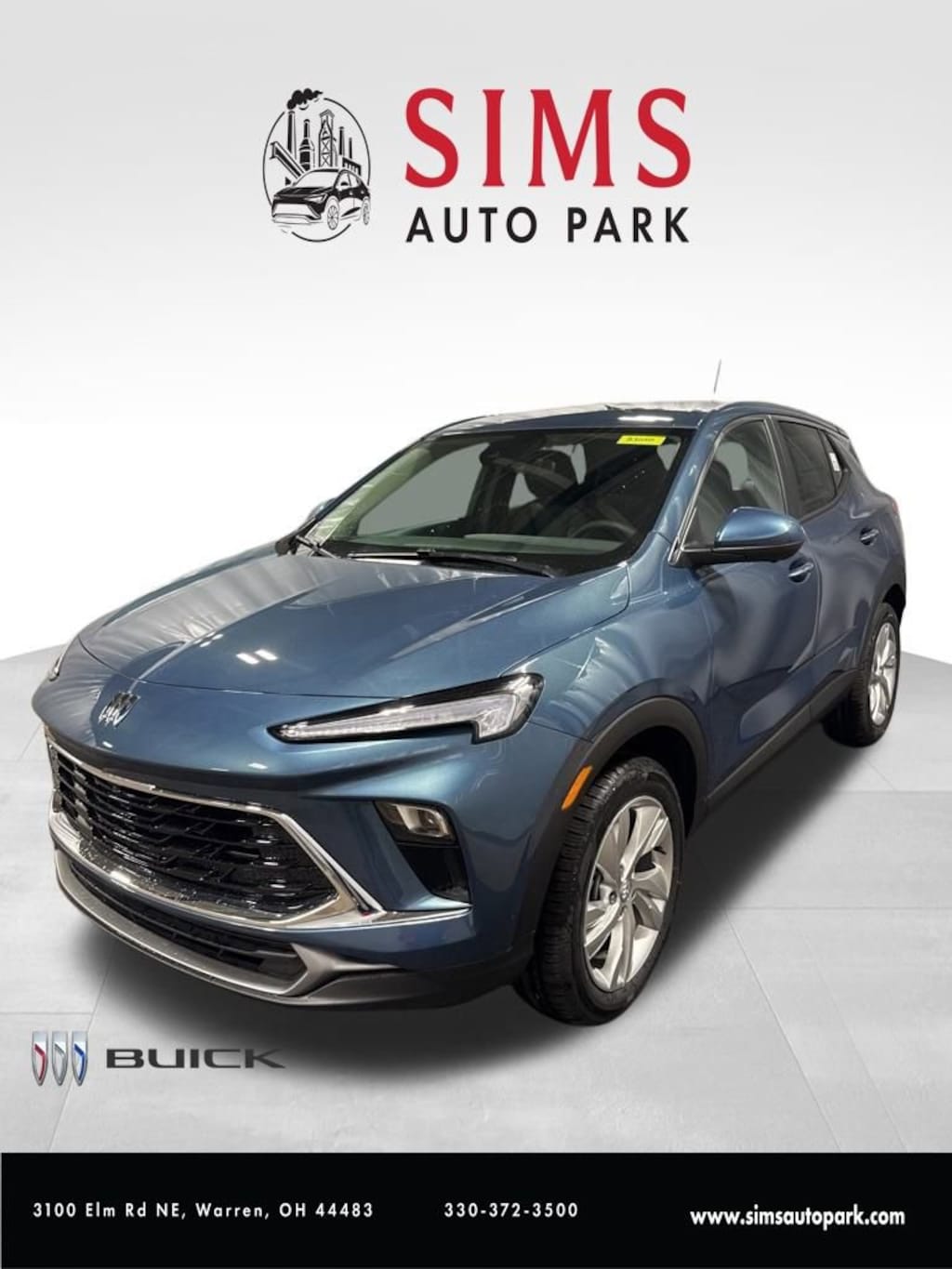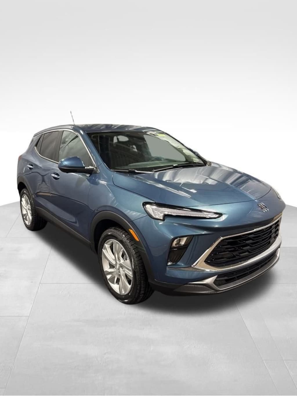 Ocean Blue Metallic 2026 Buick Encore GX Preferred AWD 9-Speed Automatic ECOTEC 1.3L Turbo 2-Way Power Driver Lumbar Control, 3.17 Final Drive Axle Ratio, 4-Way Manual Passenger Seat Adjuster, 4-Wheel Disc Brakes, 6-Way Manual Driver Seat Adjuster, 7 Speakers, 8-Way Power Driver Seat Adjuster, ABS brakes, Adaptive Cruise Control, Advanced Technology Package, Air Conditioning, All-Weather Floor Liners (LPO), Alloy wheels, AM/FM radio: SiriusXM, Auto High-beam Headlights, Automatic temperature control, Brake assist, Bumpers: body-color, Cargo Liner (LPO), Cloth w/Leatherette Seat Trim, Comfort Package, Compass, Delay-off headlights, Driver door bin, Driver vanity mirror, Dual front impact airbags, Dual front side impact airbags, Electronic Stability Control, Emergency communication system: OnStar and Buick connected services capable, Enhanced Performance 7-Speaker System w/Amplifier, Flat-Folding Front Passenger Seatback, Front anti-roll bar, Front Bucket Seats, Front Center Armrest, Front reading lights, Front wheel independent suspension, Fully automatic headlights, HD Surround Vision, Heated door mirrors, Heated Driver & Front Passenger Seats, Heated Steering Wheel, Illuminated entry, Interior Protection Package (LPO), Knee airbag, Low tire pressure warning, Occupant sensing airbag, Outside temperature display, Overhead airbag, Overhead console, Panic alarm, Passenger door bin, Passenger vanity mirror, Power door mirrors, Power Liftgate, Power steering, Power windows, Preferred Equipment Group 1SB, Radio data system, Radio: AM/FM Audio System, Rear Center Armrest, Rear Park Assist, Rear reading lights, Rear side impact airbag, Rear window defroster, Rear window wiper, Remote keyless entry, Ride & Handling Suspension, Security system, SiriusXM Trial Subscription, Speed control, Speed-sensing steering, Split folding rear seat, Spoiler, Sport Pedal Kit (LPO), Steering wheel mounted audio controls, Tachometer, Telescoping steering wheel, Tilt steering wheel, Traction control, Trip computer, Variably intermittent wipers, Wheels: 18 Bright Silver Painted Aluminum, Wireless Apple CarPlay/Wireless Android Auto, Wireless Charging.