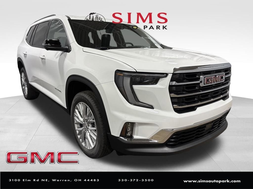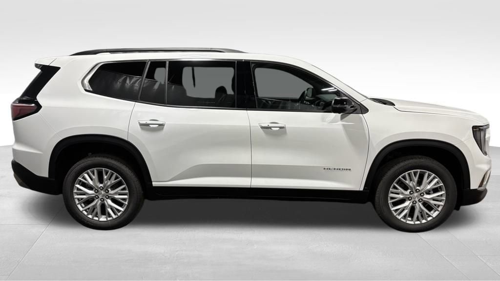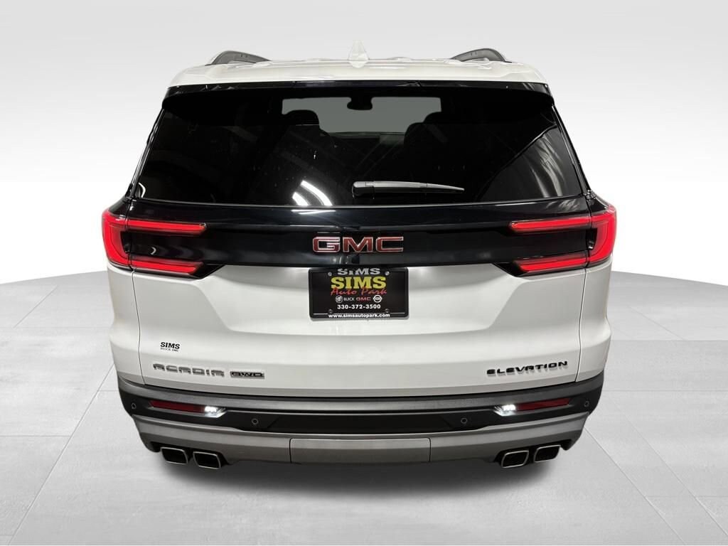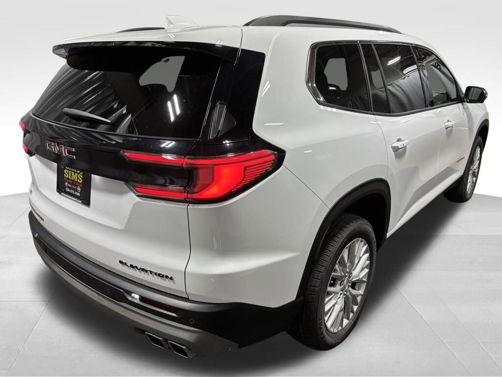 Summit White 2025 GMC Acadia Elevation AWD 8-Speed Automatic 2.5L DOHC AWD, After Dark Cloth, 12 Speakers, 18 x 7.5 Aluminum Wheels, 1st & 2nd Row All-Weather Floor Mats, 2-Way Driver Power Lumbar Seat Adjuster, 3-Channel Programmable Universal Home Remote, 3.49 Final Drive Axle Ratio, 3rd Row All-Weather Floor Liner (LPO), 3rd row seats: split-bench, 4-Way Manual Front Passenger Seat Adjuster, 4-Wheel Disc Brakes, 6-Way Power Front Passenger Seat Adjuster, 7-Passenger Seating (2-2-3 Seating Configuration), 8-Passenger Seating (2-3-3 Seating Configuration), 8-Way Power Driver Seat Adjuster, 8 Diagonal Head-Up Display, ABS brakes, Air Conditioning, All-Weather Package (LPO), Alloy wheels, AM/FM radio: SiriusXM with 360L, Apple CarPlay/Android Auto, Auto High-beam Headlights, Auto-Dimming Inside Rear-View Mirror, Auto-dimming Rear-View mirror, Automatic temperature control, Bodyside moldings, Bose Premium 12-Speaker System w/Sub-Woofer, Brake assist, Bumpers: body-color, Cloth Seat Trim, Compass, CoreTec Seat Trim, Delay-off headlights, Driver door bin, Driver vanity mirror, Dual front impact airbags, Dual front side impact airbags, Electronic Stability Control, Elevation Premium Package, Emergency communication system: OnStar Services capable, Exterior Parking Camera Rear, Four wheel independent suspension, Front anti-roll bar, Front Bucket Seats, Front Center Armrest, Front dual zone A/C, Front fog lights, Front Passenger Power Lumbar Seat Adjuster, Front reading lights, Fully automatic headlights, Heated door mirrors, Heated Driver & Front Passenger Seats, Heated front seats, Heated Rear Outboard Seating Positions, Heated steering wheel, Heated Wiper Park, Illuminated entry, Laminated Acoustic Glass, Leather steering wheel, Low tire pressure warning, Luxury Package, Navigation System, Occupant sensing airbag, Outside temperature display, Overhead airbag, Overhead console, Panic alarm, Panoramic Power Sunroof w/Sunshade, Passenger door bin, Passenger vanity mirror, Power door mirrors, Power driver seat, Power Liftgate, Power steering, Power windows, Preferred Equipment Group 4SD, Radio data system, Radio: 15 Premium GMC Infotainment System, Rear air conditioning, Rear anti-roll bar, Rear reading lights, Rear seat center armrest, Rear side impact airbag, Rear window defroster, Rear window wiper, Remote keyless entry, Security system, SiriusXM w/360L, Speed control, Speed-sensing steering, Split folding rear seat, Spoiler, Sport steering wheel, Steering wheel mounted audio controls, Tachometer, Telescoping steering wheel, Tilt steering wheel, Traction control, Trip computer, Turn signal indicator mirrors, Variably intermittent wipers, Voltmeter, Wheels: 20 x 8 Bright Silver Aluminum, AWD, After Dark Cloth.
