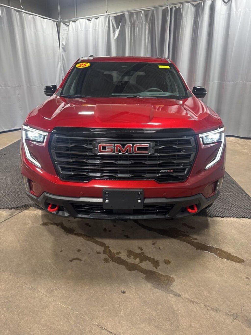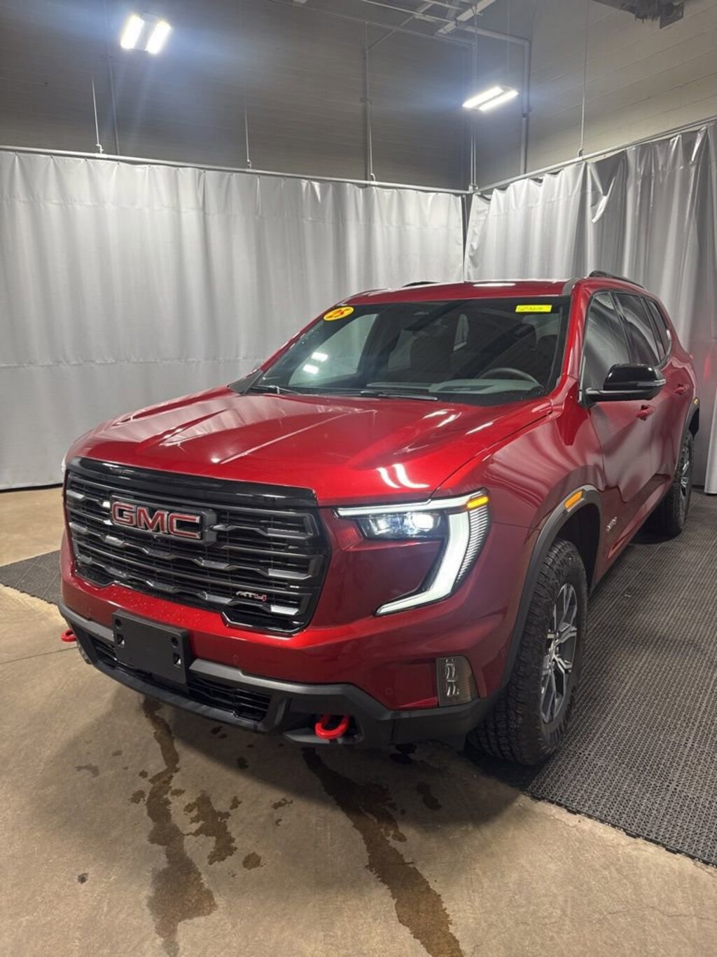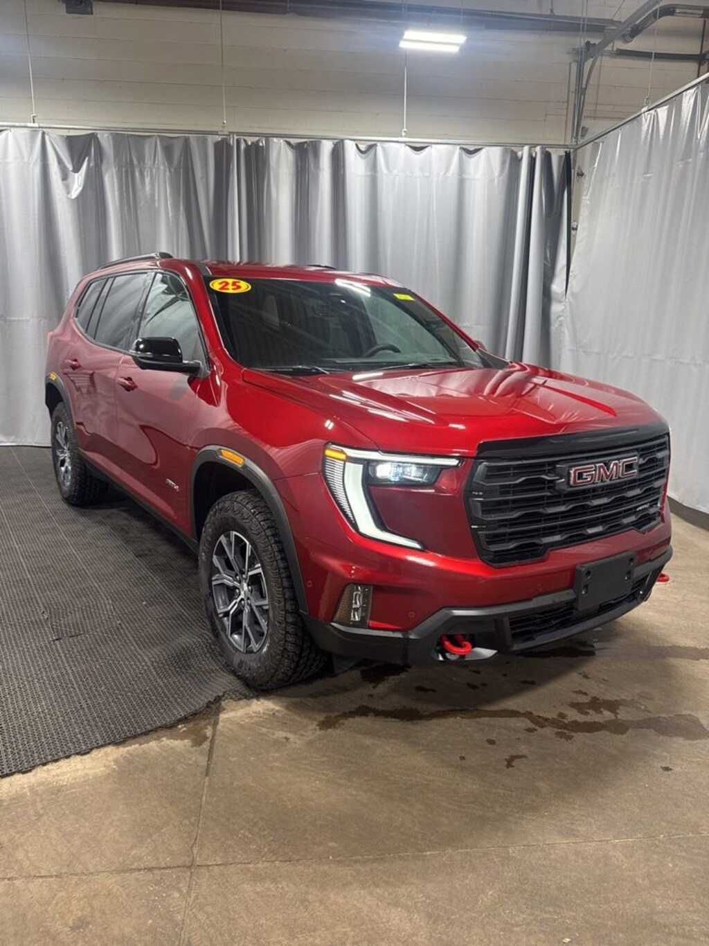 Volcanic Red 2025 GMC Acadia AT4 AWD 8-Speed Automatic 2.5L DOHC AWD, Forest Storm W/Mahogany Accents Cloth, 12 Speakers, 1st & 2nd Row All-Weather Floor Liner (LPO), 2-Way Driver Power Lumbar Seat Adjuster, 3.49 Final Drive Axle Ratio, 3rd Row All-Weather Floor Liner (LPO), 3rd row seats: split-bench, 4-Wheel Disc Brakes, 6-Way Power Front Passenger Seat Adjuster, 7-Passenger Seating (2-2-3 Seating Configuration), 8-Way Power Driver Seat Adjuster, ABS brakes, Air Conditioning, Alloy wheels, AM/FM radio: SiriusXM with 360L, Apple CarPlay/Android Auto, Auto High-beam Headlights, Auto-dimming Rear-View mirror, Automatic temperature control, Bodyside moldings, Bose Premium 12-Speaker System w/Sub-Woofer, Brake assist, Bumpers: body-color, Cloth/CoreTec Seat Trim, Compass, Delay-off headlights, Driver Attention Assist, Driver door bin, Driver vanity mirror, Dual front impact airbags, Dual front side impact airbags, Electronic Stability Control, Emergency communication system: OnStar Services capable, Enhanced Automatic Parking Assist, Exterior Parking Camera Rear, Floor Liner Package (LPO), Four wheel independent suspension, Front anti-roll bar, Front Bucket Seats, Front Center Armrest, Front dual zone A/C, Front fog lights, Front License Plate Bracket, Front Passenger Power Lumbar Seat Adjuster, Front reading lights, Fully automatic headlights, Garage door transmitter, Heated door mirrors, Heated Driver & Front Passenger Seats, Heated front seats, Heated steering wheel, Illuminated entry, Leather steering wheel, Low tire pressure warning, Navigation System, Occupant sensing airbag, Outside temperature display, Overhead airbag, Overhead console, Panic alarm, Passenger door bin, Passenger vanity mirror, Power door mirrors, Power driver seat, Power Liftgate, Power passenger seat, Power steering, Power windows, Preferred Equipment Group 4SB, Radio data system, Radio: 15 Premium GMC Infotainment System, Rear air conditioning, Rear anti-roll bar, Rear Camera Mirror, Rear reading lights, Rear side impact airbag, Rear window defroster, Rear window wiper, Remote keyless entry, Security system, SiriusXM w/360L, Speed control, Speed-sensing steering, Split folding rear seat, Spoiler, Sport steering wheel, Steering wheel mounted audio controls, Super Cruise, Super Cruise Package, Tachometer, Telescoping steering wheel, Tilt steering wheel, Traction control, Trip computer, Turn signal indicator mirrors, Variably intermittent wipers, Voltmeter, Wheels: 18 x 8 Dark Machined Aluminum, AWD, Forest Storm W/Mahogany Accents Cloth.