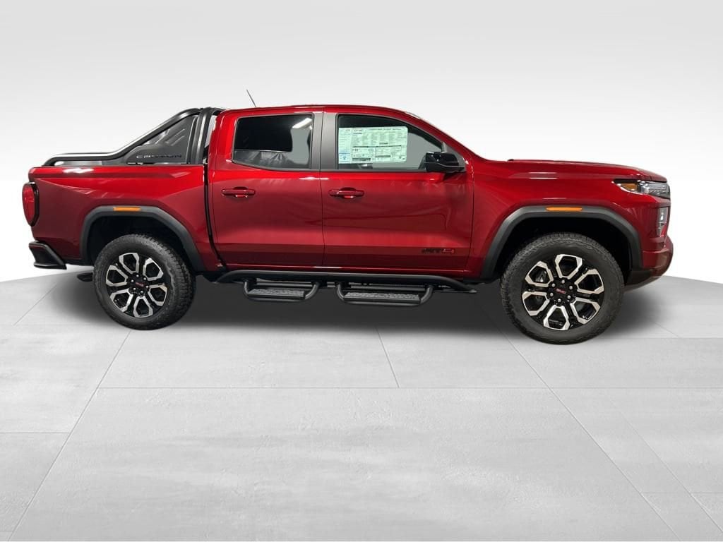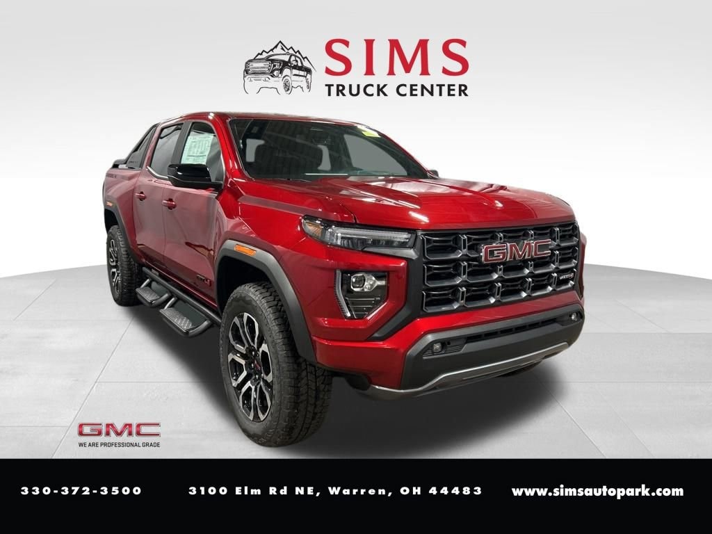 Volcanic Red 2025 GMC Canyon AT4 4WD 8-Speed Automatic 2.7L I4 Turbocharged DOHC 16V LEV3-SULEV30 310hp 4WD, 120-Volt Bed Mounted Power Outlet, 2 1st Row USB Charge/Data Ports, 2 Rear USB Ports in Center Console (Charge-Only), 3.42 Rear Axle Ratio, 4-Way Manual Front Passenger Seat Adjuster, 4-Wheel Disc Brakes, 6 Speakers, 6-Speaker Audio System Feature, 6-Way Power Passenger Seat Adjuster, 8-Way Power Driver Seat Adjuster, ABS brakes, Air Conditioning, Alloy wheels, AM/FM radio, Apple CarPlay/Android Auto, AT4 Premium Package, Auto High-beam Headlights, Auto-dimming Rear-View mirror, Automatic Emergency Braking, Automatic Stop/Start, Automatic temperature control, Bed-Mounted Tubular Sport Bar (LPO), Black Badges (LPO), Blind Zone Steering Assist w/Trailering, Brake assist, Bumpers: body-color, Canyon Pro Safety, Canyon Safety Plus Package, Cloth/CoreTec Seat Trim, Compass, Delay-off headlights, Driver & Front Passenger Illuminated Visors, Driver & Front Passenger Ventilated Seats, Driver door bin, Driver Memory, Driver Mode Selector, Driver Seatback Map Pocket, Driver vanity mirror, Dual front impact airbags, Dual front side impact airbags, Dual-Zone Auto Climate Control Air Conditioning, Electronic Stability Control, Emergency communication system: OnStar, EZ-Lift & Lower Tailgate, Following Distance Indicator, Forward Collision Alert, Front anti-roll bar, Front Bucket Seats, Front Center Armrest, Front dual zone A/C, Front fog lights, Front LED Fog Lamps, Front Passenger Seatback Map Pocket, Front Pedestrian & Bicyclist Braking, Front reading lights, Front wheel independent suspension, Heated door mirrors, Heated Driver & Front Passenger Seats, Heated front seats, Heated Steering Wheel, Illuminated entry, Inside Rear-View Auto-Dimming Mirror, Integrated Trailer Brake Controller, IntelliBeam Automatic High Beam On/Off, Interior Overhead Courtesy Light w/Dual Reading Lamp, Lane Keep Assist w/Lane Departure Warning, Low tire pressure warning, MultiStow Tailgate Storage Compartment, Navigation System, Nightfall Edition, Occupant sensing airbag, Off-Road Suspension, Outside temperature display, Overhead airbag, Overhead console, Panic alarm, Passenger door bin, Passenger vanity mirror, Perforated Leather-Appointed Seat Trim, Power door mirrors, Power Driver Lumbar Control Seat Adjuster, Power driver seat, Power Passenger Lumbar Control Seat Adjuster, Power steering, Power windows, Preferred Equipment Group 4SG, Radio data system, Radio: 11.3 Diagonal Premium GMC Infotainment Sys, Rear Center Fold-Down Armrest w/2 Cupholders, Rear Cross Traffic Braking, Rear of Console 120-Volt Power Outlet, Rear reading lights, Rear step bumper, Rear window defroster, Remote keyless entry, Remote Vehicle Starter System, Rocker Panel Protector (LPO), Security system, SiriusXM w/360L, Speed control, Speed-sensing steering, Split folding rear seat, Spray-On Bedliner w/GMC Logo, Steering wheel mounted audio controls, Stop/Start System Disable Button Engine Control, Tachometer, Tailgate Keyed Cylinder Lock, Telescoping steering wheel, Tilt & Telescopic Manual Steering Column, Tilt steering wheel, Traction control, Trip computer, Ultrasonic Rear Park Assist, Variably intermittent wipers, Wheels: 18 x 8.5 Dark Gray Machined Finish Alum, Wheels: 20 x 9 Machined Faced Aluminum, Wireless Apple CarPlay/Wireless Android Auto, Wireless Phone Charging, 4WD.