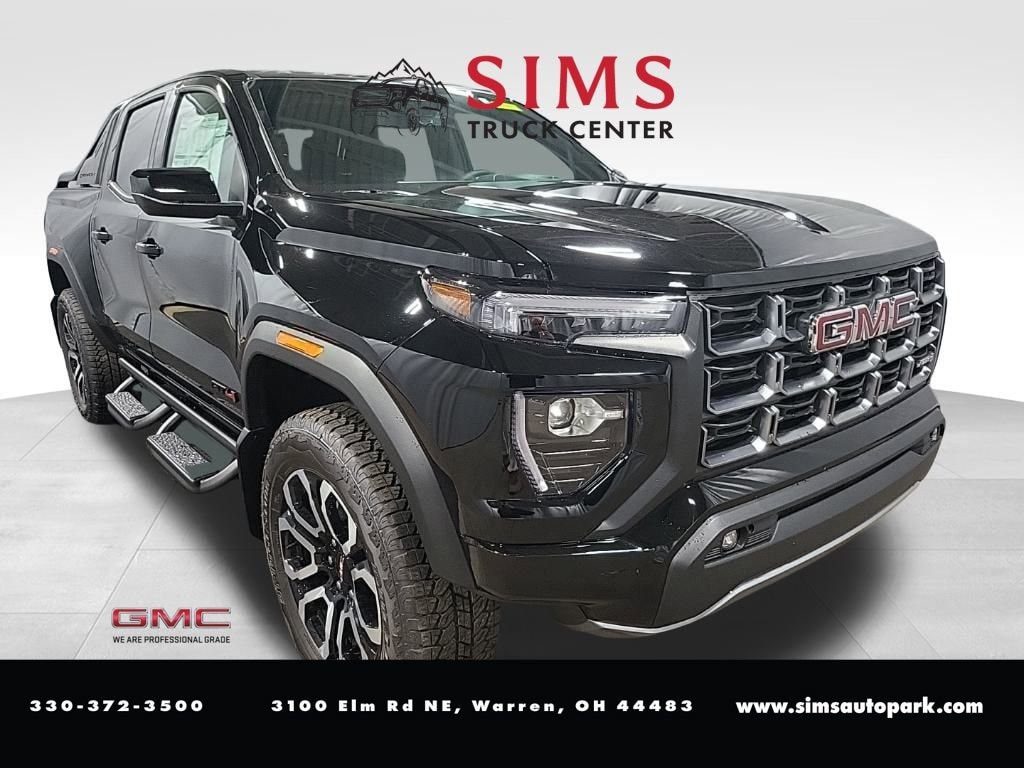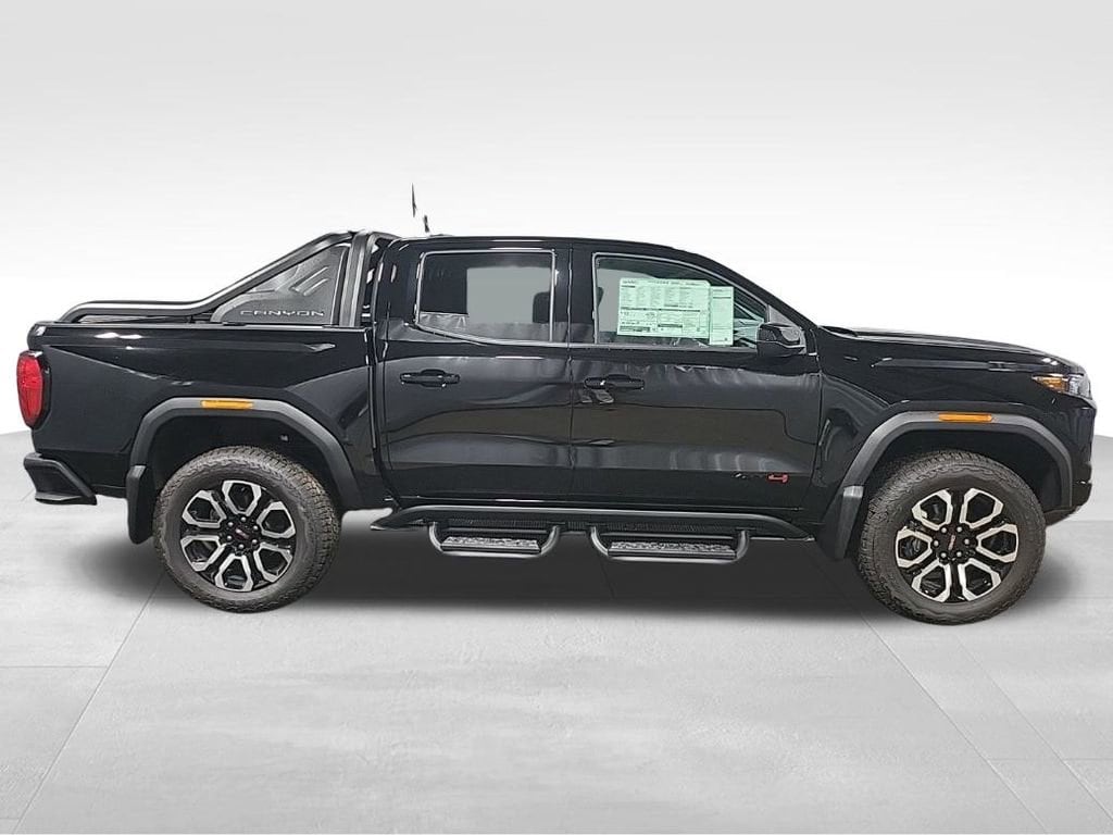 Onyx Black 2025 GMC Canyon AT4 4WD 8-Speed Automatic 2.7L I4 Turbocharged DOHC 16V LEV3-SULEV30 310hp 4WD, 120-Volt Bed Mounted Power Outlet, 2 1st Row USB Charge/Data Ports, 2 Rear USB Ports in Center Console (Charge-Only), 3.42 Rear Axle Ratio, 4-Way Manual Front Passenger Seat Adjuster, 4-Wheel Disc Brakes, 6 Speakers, 6-Speaker Audio System Feature, 8-Way Power Driver Seat Adjuster, ABS brakes, Air Conditioning, Alloy wheels, AM/FM radio, Apple CarPlay/Android Auto, Auto High-beam Headlights, Auto-dimming Rear-View mirror, Automatic Emergency Braking, Automatic Stop/Start, Automatic temperature control, Bed-Mounted Tubular Sport Bar (LPO), Black Badges (LPO), Blind Zone Steering Assist w/Trailering, Brake assist, Bumpers: body-color, Canyon Pro Safety, Canyon Safety Plus Package, Cloth/CoreTec Seat Trim, Compass, Delay-off headlights, Driver & Front Passenger Illuminated Visors, Driver door bin, Driver Mode Selector, Driver vanity mirror, Dual front impact airbags, Dual front side impact airbags, Dual-Zone Auto Climate Control Air Conditioning, Electronic Stability Control, Emergency communication system: OnStar, EZ-Lift & Lower Tailgate, Following Distance Indicator, Forward Collision Alert, Front anti-roll bar, Front Bucket Seats, Front Center Armrest, Front dual zone A/C, Front fog lights, Front LED Fog Lamps, Front Passenger Seatback Map Pocket, Front Pedestrian & Bicyclist Braking, Front reading lights, Front wheel independent suspension, Heated door mirrors, Heated Driver & Front Passenger Seats, Heated front seats, Illuminated entry, Inside Rear-View Auto-Dimming Mirror, Integrated Trailer Brake Controller, IntelliBeam Automatic High Beam On/Off, Interior Overhead Courtesy Light w/Dual Reading Lamp, Lane Keep Assist w/Lane Departure Warning, Low tire pressure warning, MultiStow Tailgate Storage Compartment, Navigation System, Nightfall Edition, Occupant sensing airbag, Off-Road Suspension, Outside temperature display, Overhead airbag, Overhead console, Panic alarm, Passenger door bin, Passenger vanity mirror, Power door mirrors, Power Driver Lumbar Control Seat Adjuster, Power driver seat, Power steering, Power windows, Preferred Equipment Group 4SG, Radio data system, Radio: 11.3 Diagonal Premium GMC Infotainment Sys, Rear Cross Traffic Braking, Rear of Console 120-Volt Power Outlet, Rear reading lights, Rear step bumper, Rear window defroster, Remote keyless entry, Remote Vehicle Starter System, Rocker Panel Protector (LPO), Security system, SiriusXM w/360L, Speed control, Speed-sensing steering, Split folding rear seat, Spray-On Bedliner w/GMC Logo, Steering wheel mounted audio controls, Stop/Start System Disable Button Engine Control, Tachometer, Tailgate Keyed Cylinder Lock, Telescoping steering wheel, Tilt & Telescopic Manual Steering Column, Tilt steering wheel, Traction control, Trip computer, Ultrasonic Rear Park Assist, Variably intermittent wipers, Wheels: 18 x 8.5 Dark Gray Machined Finish Alum, Wheels: 20 x 9 Machined Faced Aluminum, Wireless Apple CarPlay/Wireless Android Auto, 4WD.
