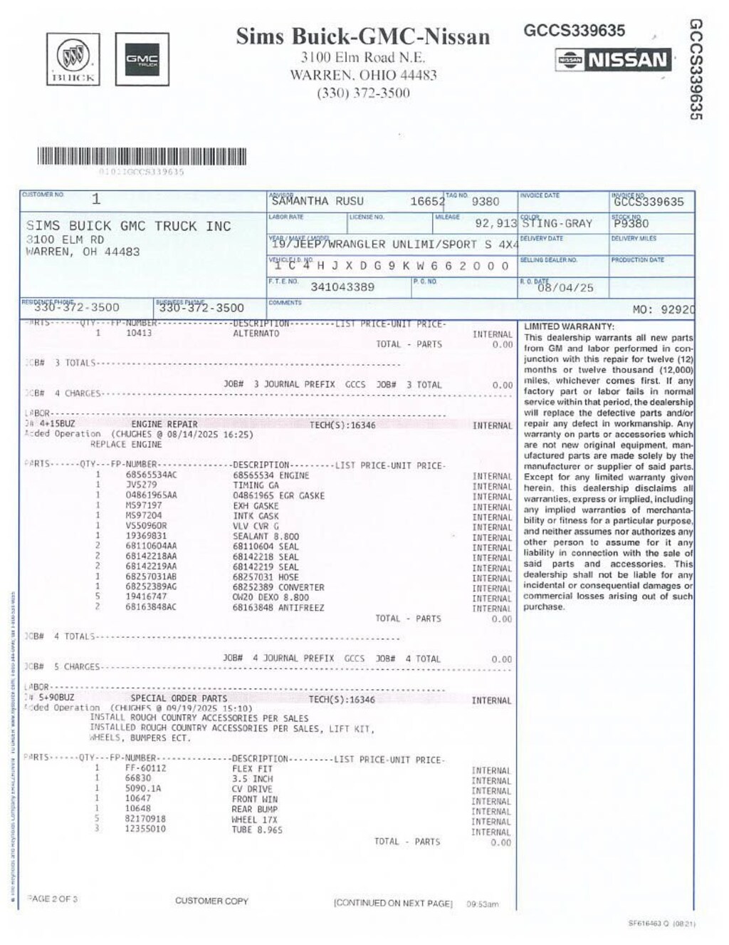 Sting-Gray Clearcoat 2019 Jeep Wrangler Unlimited Rough Country Upfit 4WD 8-Speed Automatic 3.6L V6 24V VVT Rough Country Front Bumper, Rough Country Rear Bumper, Rough Country Flex Fit Floor Mats, Rough Country 3.5 Inch Lift Kit, Rough Country CV Drive Shaft, Rough Country 82 Series Black Wheels, Brand New Engine, Wrangler Unlimited Rough Country Upfit, ABS brakes, Compass, Electronic Stability Control, Low tire pressure warning, ParkView Rear Back-Up Camera, Traction control.