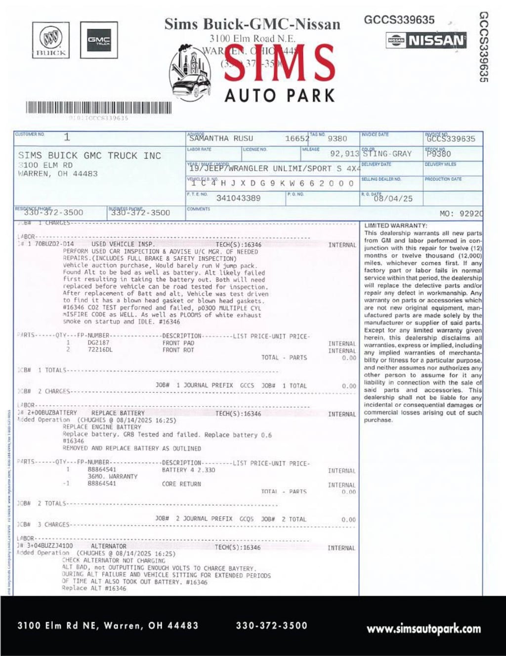 - 92,913 miles