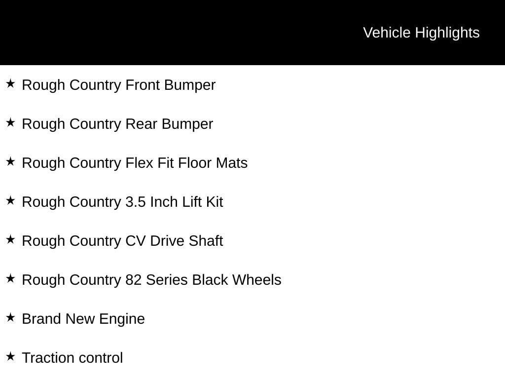 The result? A Wrangler that's built to dominate trails, turn heads, and stay Rough Country tough from the inside out. From Texas this Jeep is super clean and has a Brand New Engine!